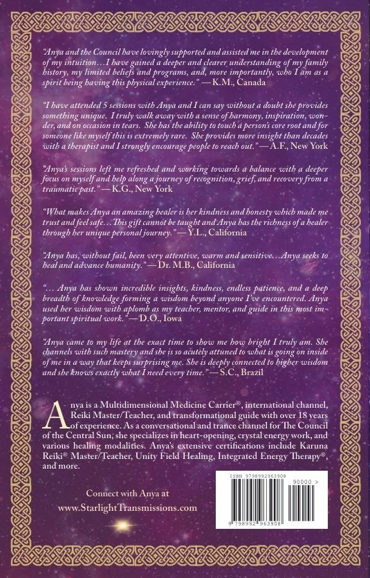 As a Multidimensional Medicine Carrier,® heart opener, transformational guide, channel, speaker and author, it is Anya’s greatest passion to support others in remembering that they are multidimensional creators embodied to explore consciousness, creation, and the quantum Universe; and, thus, embrace the light, love, joy and wholeness that is their birthright.