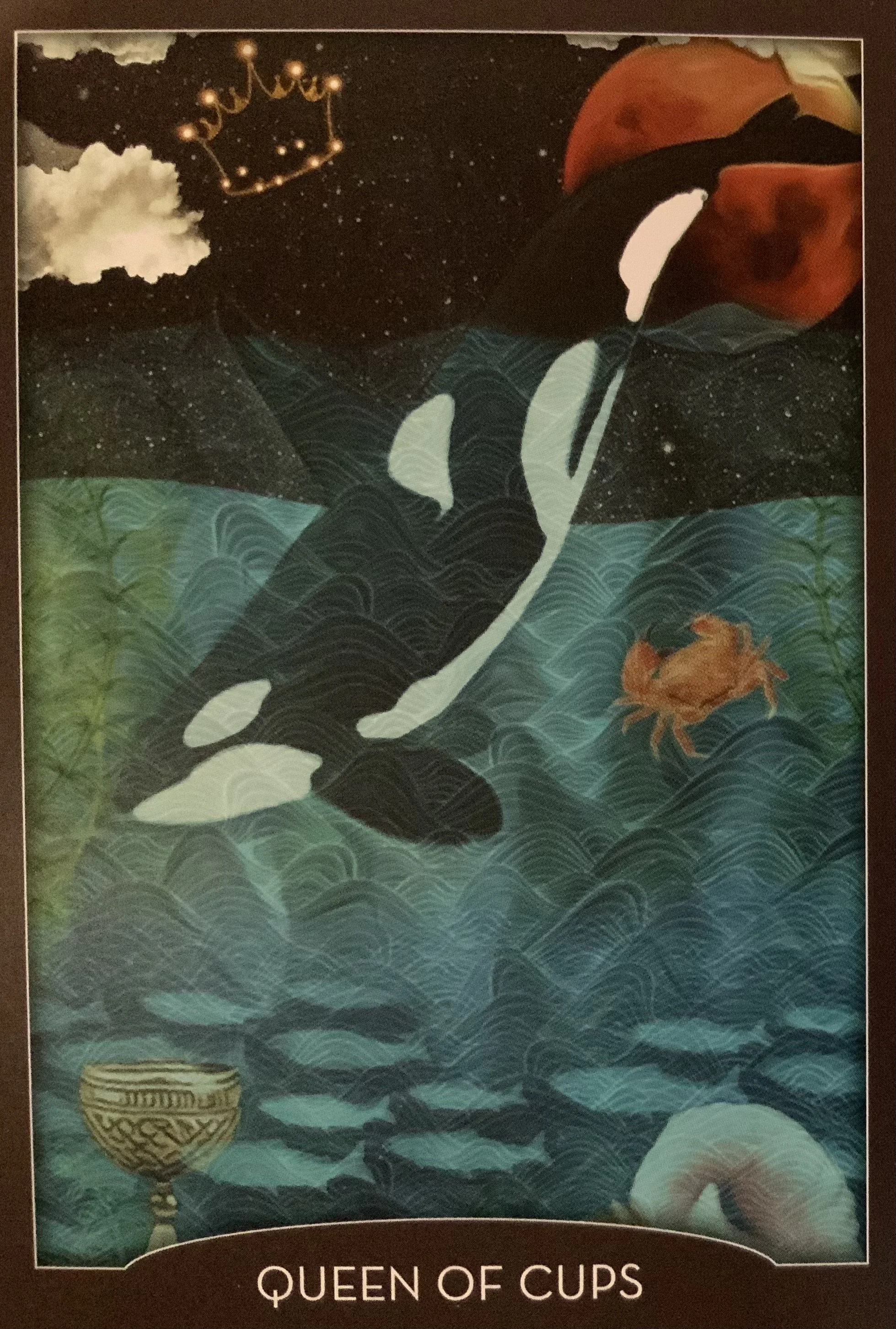 The Queen of Cups also represents the balance between supporting others and taking care of self. This is part of her strength. And we are reminded that self-care allows us to give more to those around us, thus receiving more in return as part of the natural cycle and flow of energy.
