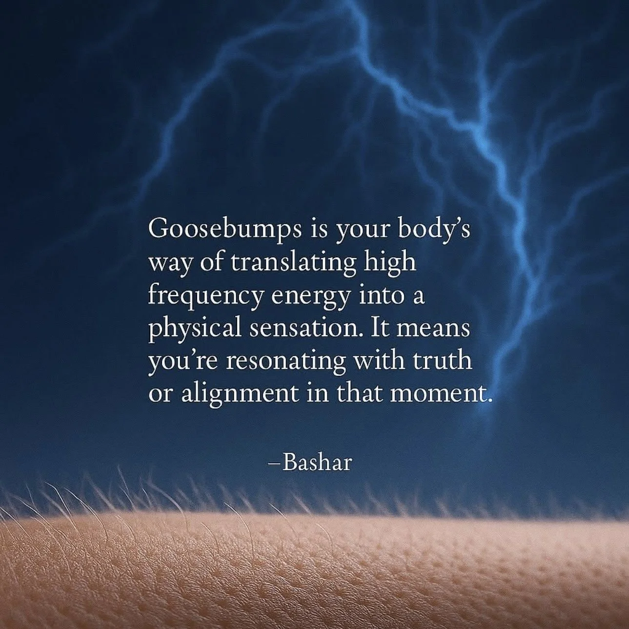 The body is also a conduit to the heart and our Higher Selves and Spirit. It receives signals and lets us know we are on the “right track.” For me confirmations often come in the form of goosebumps. Of late, the signals are so strong I sometimes joke that I have bumps on bumps 😉✨.