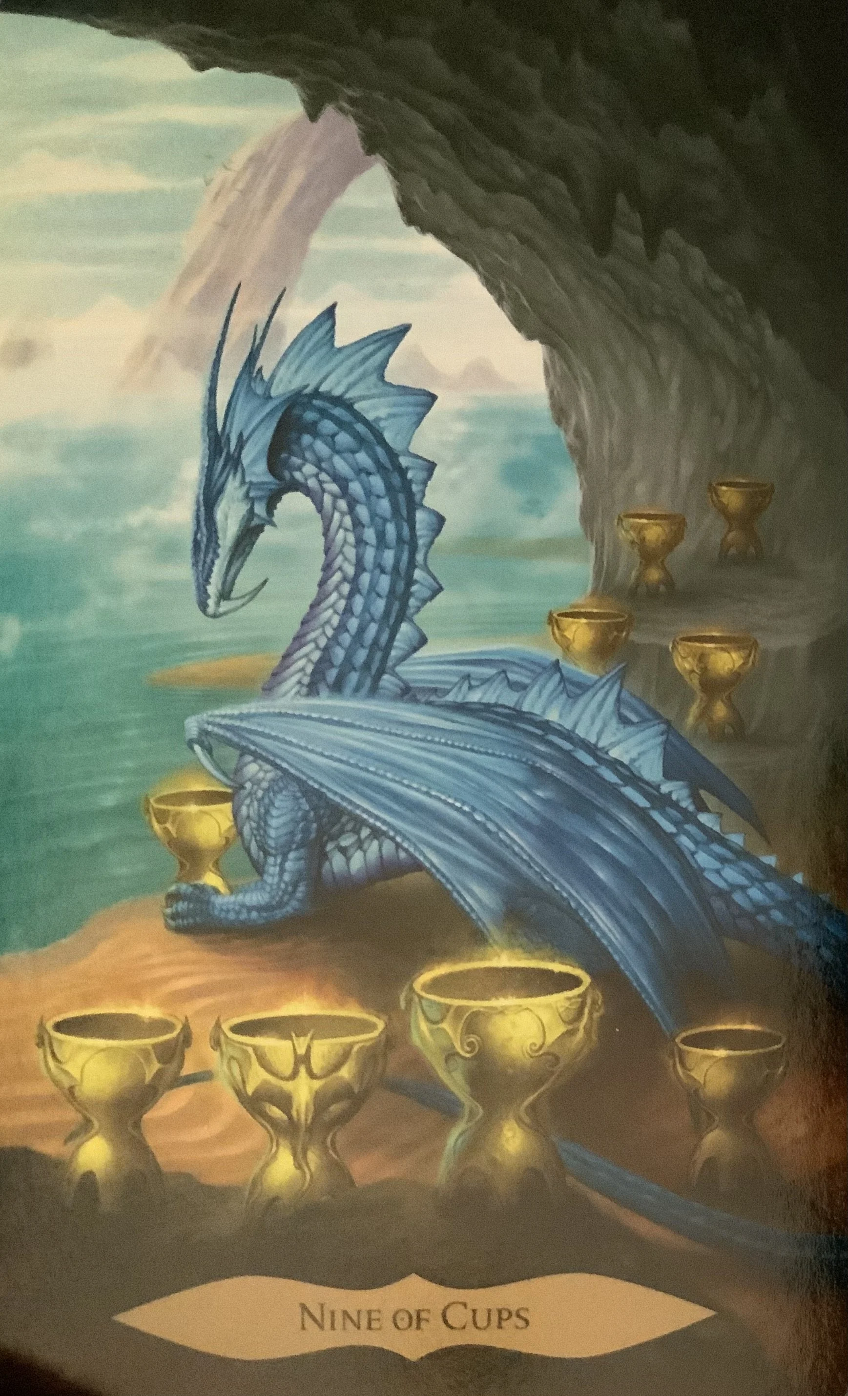 Today we are greeted by the energies of the Nine of Cups. This card is often referred to as the “Wish Card.” It encourages celebrating how far we have come and enjoying life’s pleasures.
